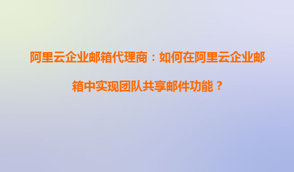 阿里云企业邮箱代理商:团队共享邮件功能的实现与优势