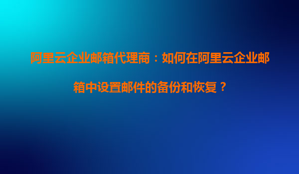 阿里云企业邮箱代理商:如何在阿里云企业邮箱中设置邮件的备份和恢复?