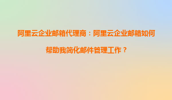 阿里云企业邮箱代理商:阿里云企业邮箱如何帮助我简化邮件管理工作?