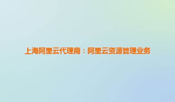 作为上海阿里云代理商,我们的核心业务是资源管理,具体内容包括: