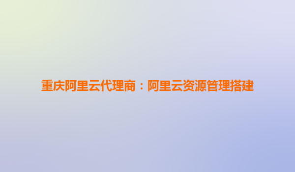 重庆阿里云代理商:阿里云资源管理搭建指南