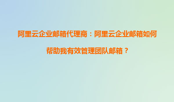 阿里云企业邮箱代理商:阿里云企业邮箱如何帮助我有效管理团队邮箱?
