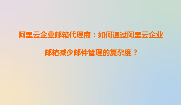 阿里云企业邮箱如何减少邮件管理的复杂度