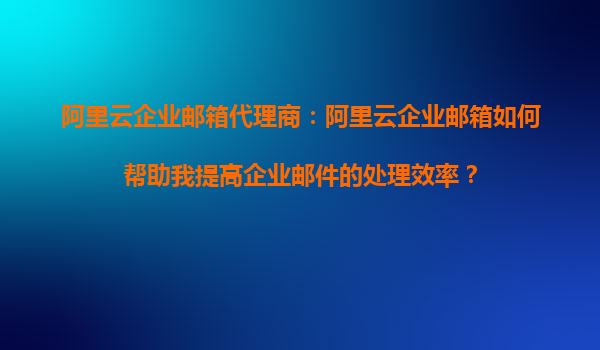 阿里云企业邮箱代理商:阿里云企业邮箱如何帮助我提高企业邮件的处理效率?