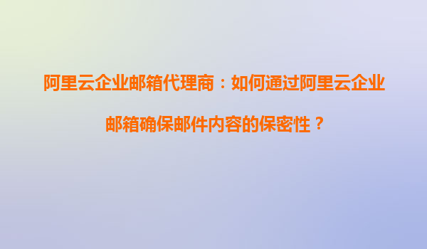 阿里云企业邮箱代理商:如何通过阿里云企业邮箱确保邮件内容的保密性?