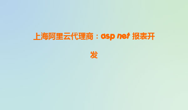 上海阿里云代理商:ASP.NET 报表开发的最佳实践与优势