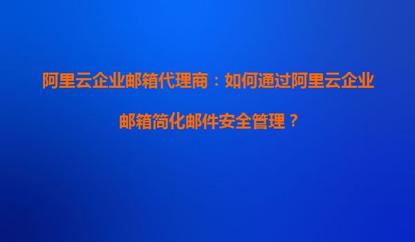 阿里云企业邮箱代理商:如何通过阿里云企业邮箱简化邮件安全管理?