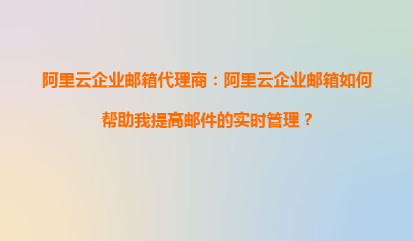 阿里云企业邮箱代理商:阿里云企业邮箱如何帮助我提高邮件的实时管理?
