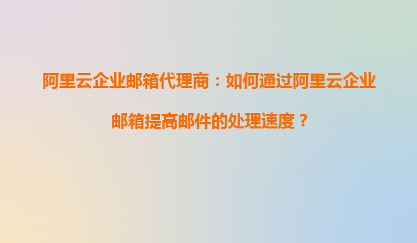 阿里云企业邮箱代理商:如何通过阿里云企业邮箱提高邮件的处理速度?