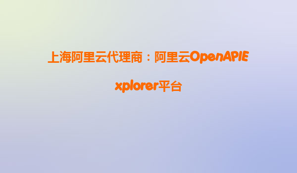 上海阿里云代理商:阿里云OpenAPI Explorer平台——探索云端无限可能