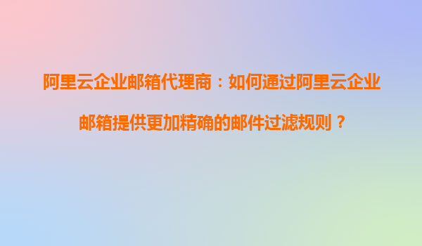 阿里云企业邮箱代理商:如何通过阿里云企业邮箱提供更加精确的邮件过滤规则?