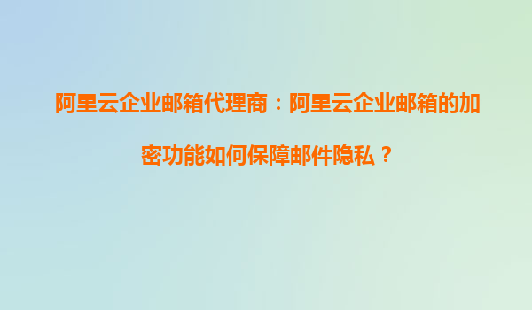 阿里云企业邮箱代理商:阿里云企业邮箱的加密功能如何保障邮件隐私?