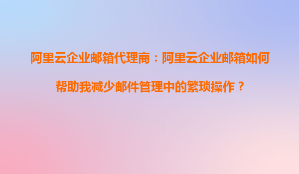 阿里云企业邮箱代理商:阿里云企业邮箱如何帮助我减少邮件管理中的繁琐操作?