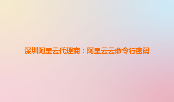 深圳阿里云代理商:阿里云云命令行密码的优势与应用场景