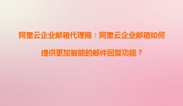 阿里云企业邮箱代理商:阿里云企业邮箱如何提供更加智能的邮件回复功能?