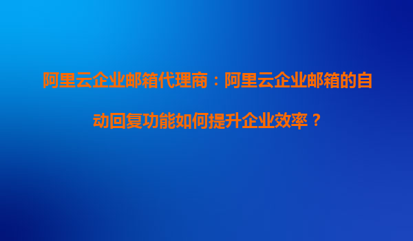阿里云企业邮箱代理商:阿里云企业邮箱的自动回复功能如何提升企业效率?