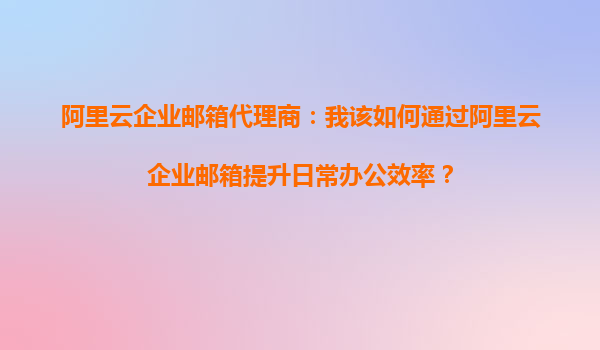 阿里云企业邮箱代理商:我该如何通过阿里云企业邮箱提升日常办公效率?