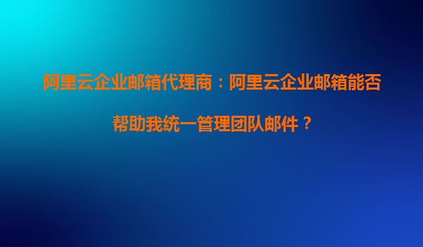 阿里云企业邮箱代理商:阿里云企业邮箱能否帮助我统一管理团队邮件?