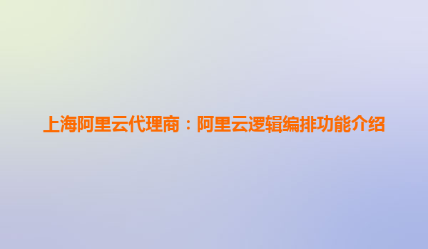 上海阿里云代理商:阿里云逻辑编排功能介绍