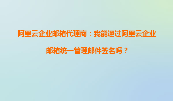 阿里云企业邮箱代理商的优势:统一管理邮件签名功能详解
