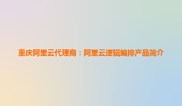 重庆阿里云代理商:阿里云逻辑编排产品简介