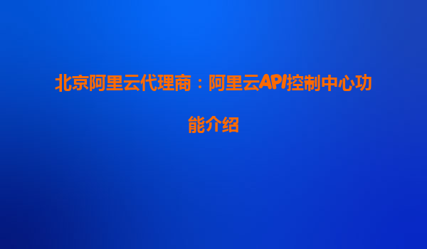 北京阿里云代理商:阿里云API控制中心功能介绍