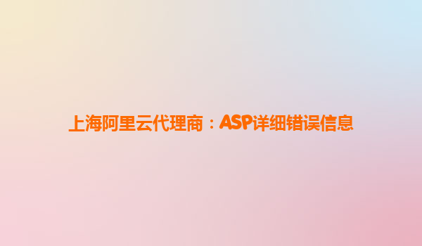 上海阿里云代理商:ASP详细错误信息解析与阿里云优势