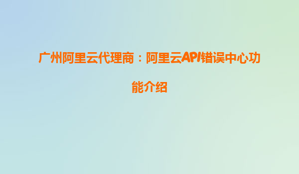 广州阿里云代理商:阿里云API错误中心功能介绍