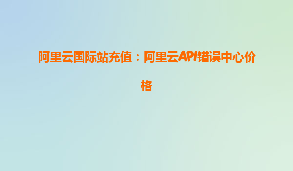 阿里云国际站充值与API错误中心价格解析:一站式上云解决方案