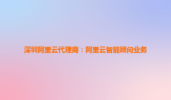 深圳阿里云代理商:阿里云智能顾问业务解析