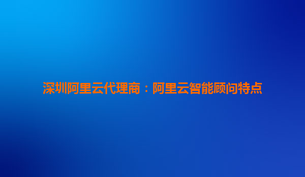 深圳阿里云代理商:阿里云智能顾问特点与优势剖析