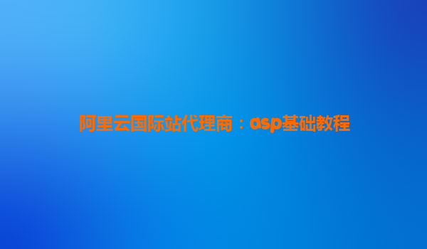 阿里云国际站代理商:ASP基础教程与云计算优势详解