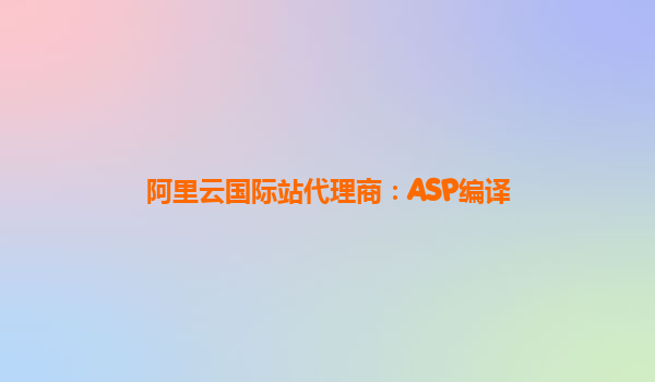 阿里云国际站代理商:ASP编译服务的最佳伙伴