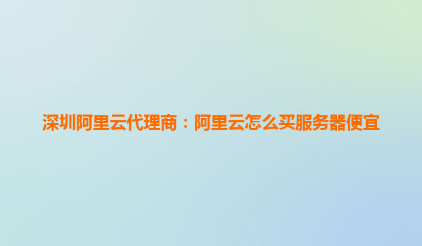 深圳阿里云代理商:阿里云怎么买服务器便宜