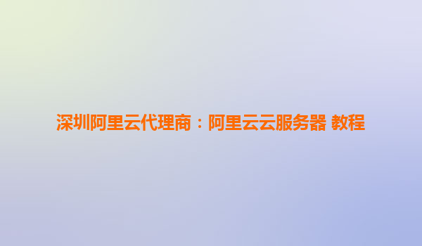 深圳阿里云代理商:阿里云云服务器选购与部署教程