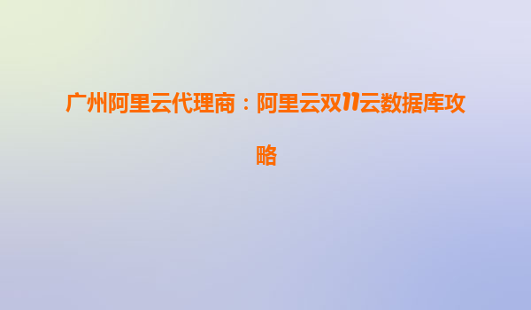广州阿里云代理商:阿里云双11云数据库攻略