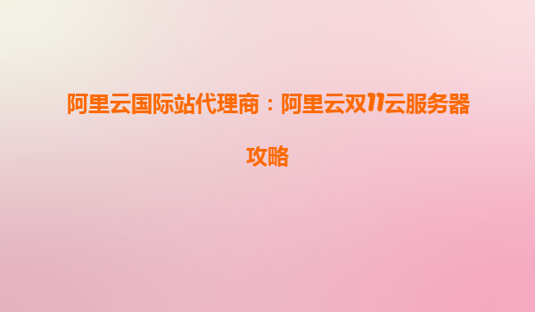 阿里云国际站代理商:阿里云双11云服务器攻略