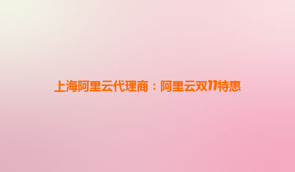 上海阿里云代理商:阿里云双11特惠活动开启,企业上云正当时