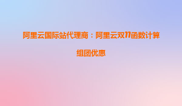 阿里云双11函数计算组团优惠:代理商助力企业低成本上云