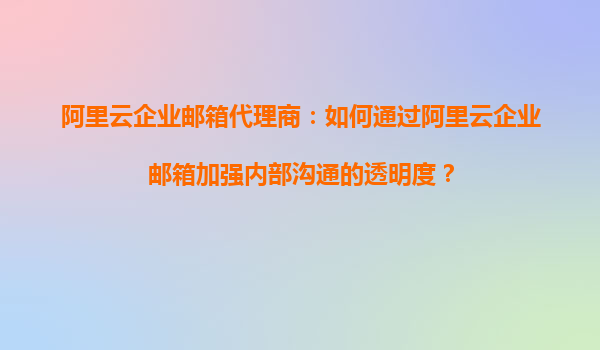 阿里云企业邮箱代理商:如何通过阿里云企业邮箱加强内部沟通的透明度?