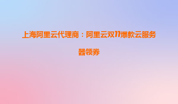 上海阿里云代理商:阿里云双11爆款云服务器领券指南