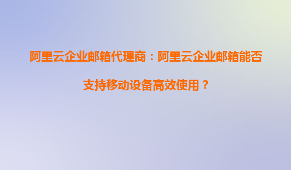 阿里云企业邮箱代理商:阿里云企业邮箱能否支持移动设备高效使用?
