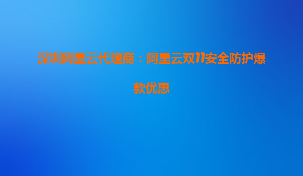 深圳阿里云代理商特别企划:双11安全防护爆款优惠来袭