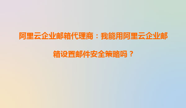 阿里云企业邮箱代理商:我能用阿里云企业邮箱设置邮件安全策略吗?