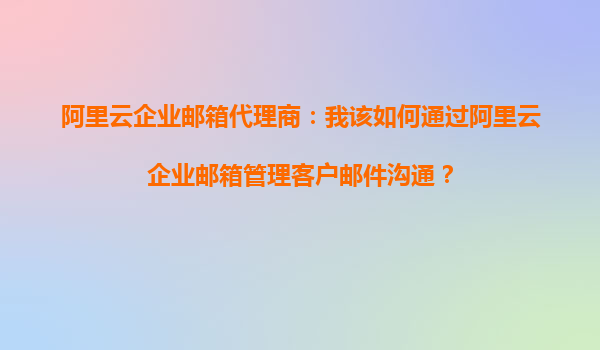在数字化时代,企业邮箱不仅是内部沟通的桥梁,更是与客户建立长期联系的重要工具。作为阿里云企业邮箱代理商,为客户提供稳定、安全且高效的邮件管理服务是我们的核心目标。本文将详细解析阿里云企业邮箱如何帮助企业优化客户邮件沟通,并突出其关键优势。