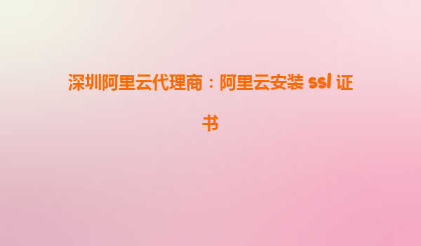 深圳阿里云代理商:阿里云安装SSL证书全流程指南