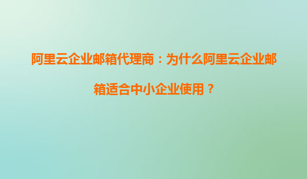 阿里云企业邮箱代理商:为什么阿里云企业邮箱适合中小企业使用?