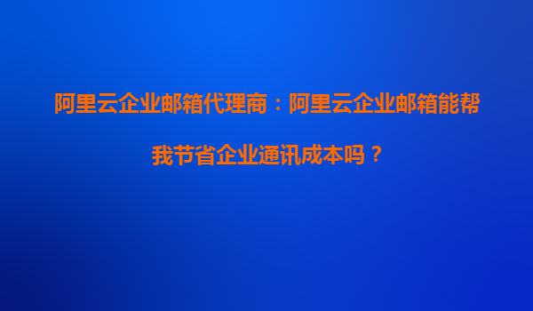 阿里云h1>企业邮箱代理商:阿里云Sprout云企业邮箱能帮我节省企业通讯成本吗?