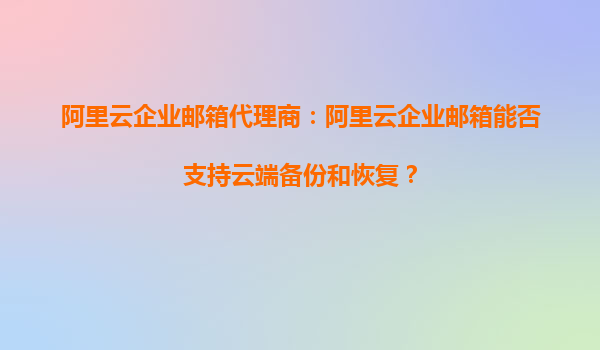 阿里云企业邮箱代理商:阿里云企业邮箱能否支持云端备份和恢复?