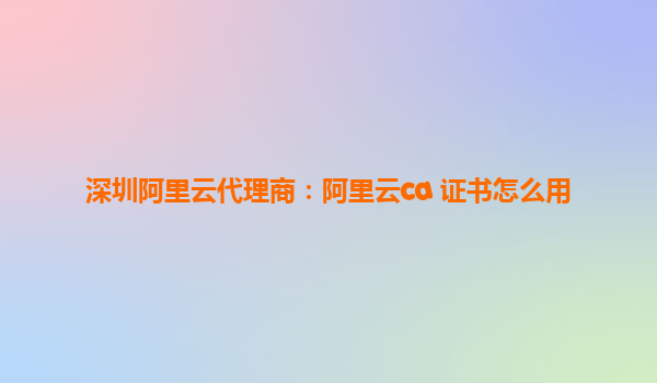 深圳阿里云代理商指南:阿里云CA证书使用详解与优势解析
